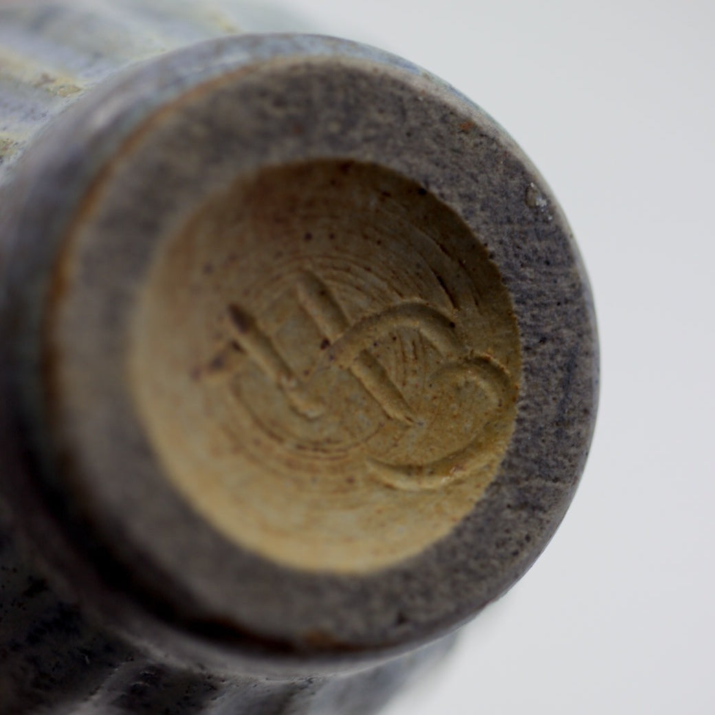 Baby blue Arne Bang ribbed fluted vase. 8.25cm tall. Incised on the base AB.