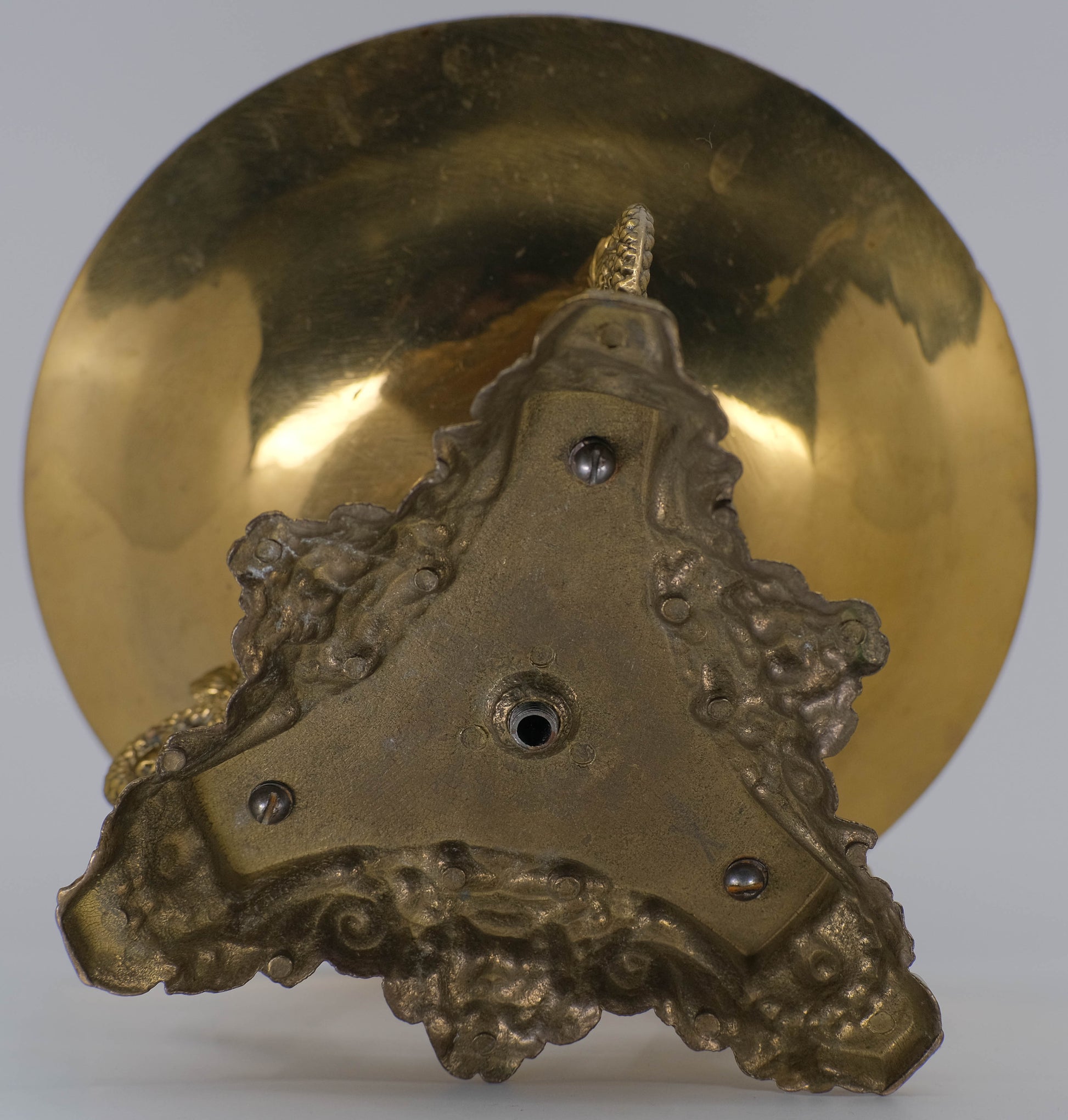 Wonderfully ornate with a desirable aged patina. Elaborate concentric patterns, raised central dome with acanthus detail.